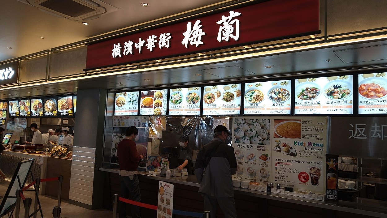 横浜市金沢区の大型商業施設・三井アウトレットパーク横浜ベイサイド2階フードコートにある中華料理店です。ランチで梅蘭焼きそば800円をいただきました。焦げ目の付いた面が上で、野菜などの餡が麺の下になっている梅蘭名物の焼きそばです。餡の味付けも良く、パリッとした麺との相性も抜群。満足のランチとなりました。