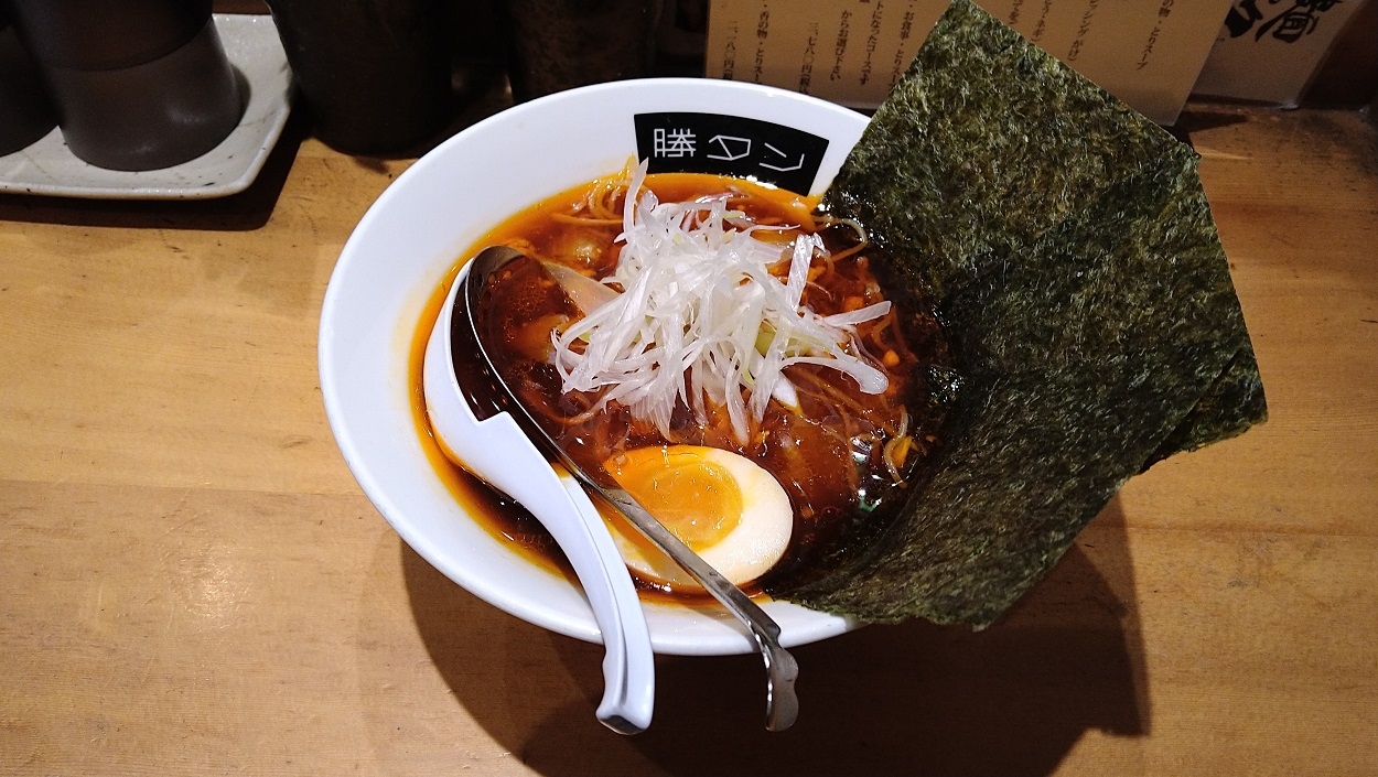 東京メトロ茅場町駅から徒歩5~6分程度、中央区日本橋茅場町3丁目のビル地下1階にある焼き鳥屋さんです。ランチタイムには何故か勝浦タンタンメンを提供していたので、ランチで勝浦タンタンメン並900円をいただきました。具は海苔3枚、ゆで卵半分、肉ミンチ、白髪ネギで、コシのある細めの縮れ麺と真っ赤な色のピリ辛スープの一品です。程よい辛さで、旨味もあり、癖になる味。とっても美味しいスープの麺料理でした。