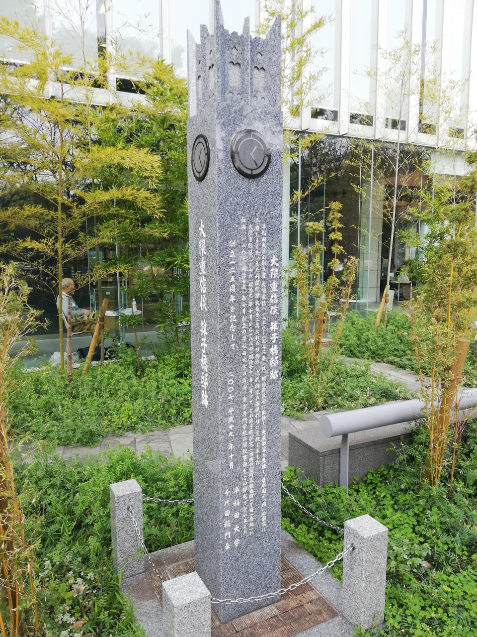 明治の元勲・大隈重信の家があった跡地です。大隈重信だから家は早稲田にあったんじゃない?と思われがちですが、皇居に近い千代田にありました。今では碑しかありませんが、かつてはここで東京専門学校(早稲田大学)の事務を行っていたそうです。