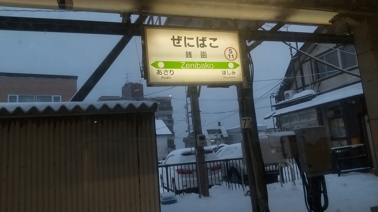 函館本線、札幌から電車で小樽に行く途中の駅。日本海沿いを走る電車から雪景色や荒波を見ながら極寒の北海道を満喫。
