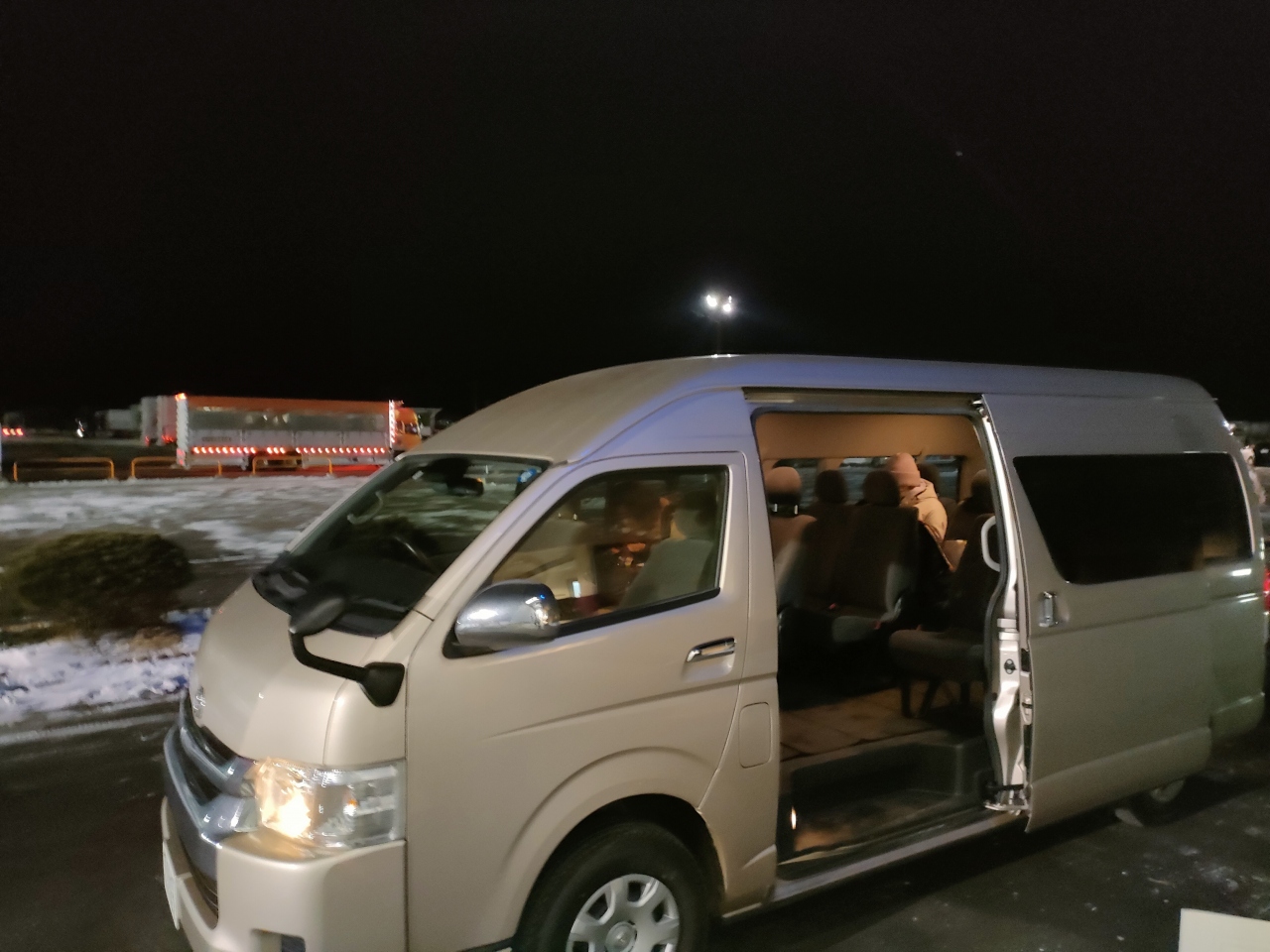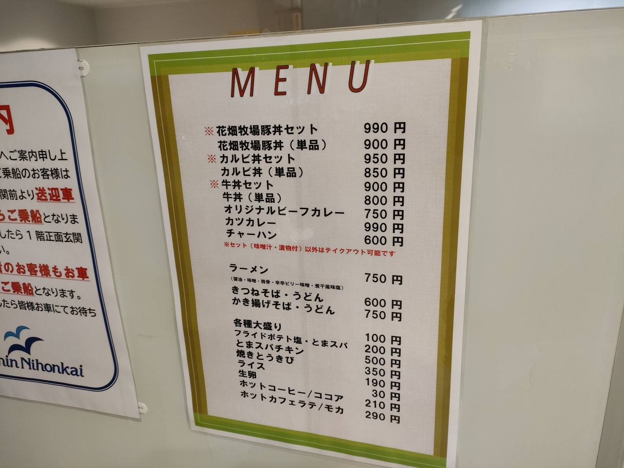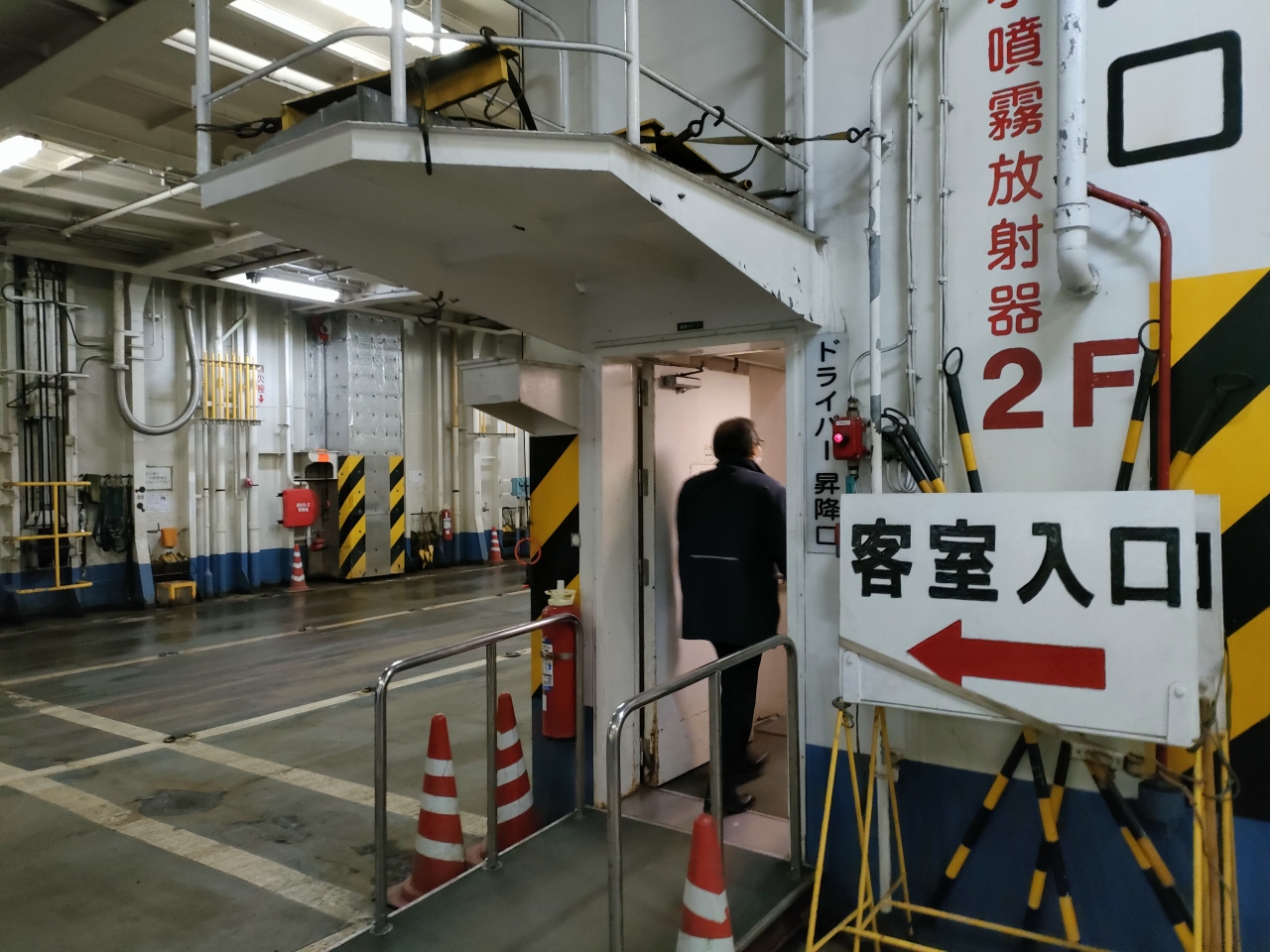 大洗や仙台行きなど他のフェリー会社が発着する苫小牧西港とは15kmほど離れた街はずれ(隣の町)にあるので、場所を間違えないように注意が必要です。新日本海フェリーの秋田・新潟行きの便が出ています。訪れた時は、天候で船の出港が遅れ、お客さんも少なかったせいか、船にタラップを着けず、徒歩での乗客は玄関前からハイエースに乗せられて車両甲板から乗船しました。