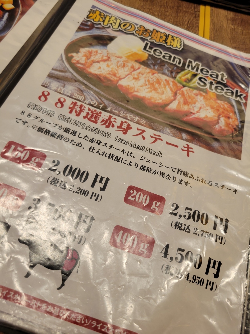 赤身ステーキやはり88jrのステーキよりしっかりとしています~~美味しいです
