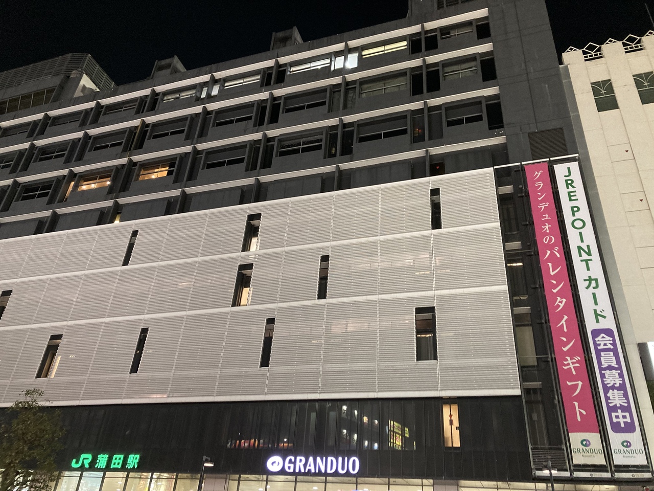 今回蒲田で安い宿を探したら、たまたまグランデユオの向かいだった。羽田空港への前泊、後泊だったので、JR蒲田駅直結のグランデユオの飲食店やパン屋さんを利用しました。JREのポイントカードも利用できてお得でした。