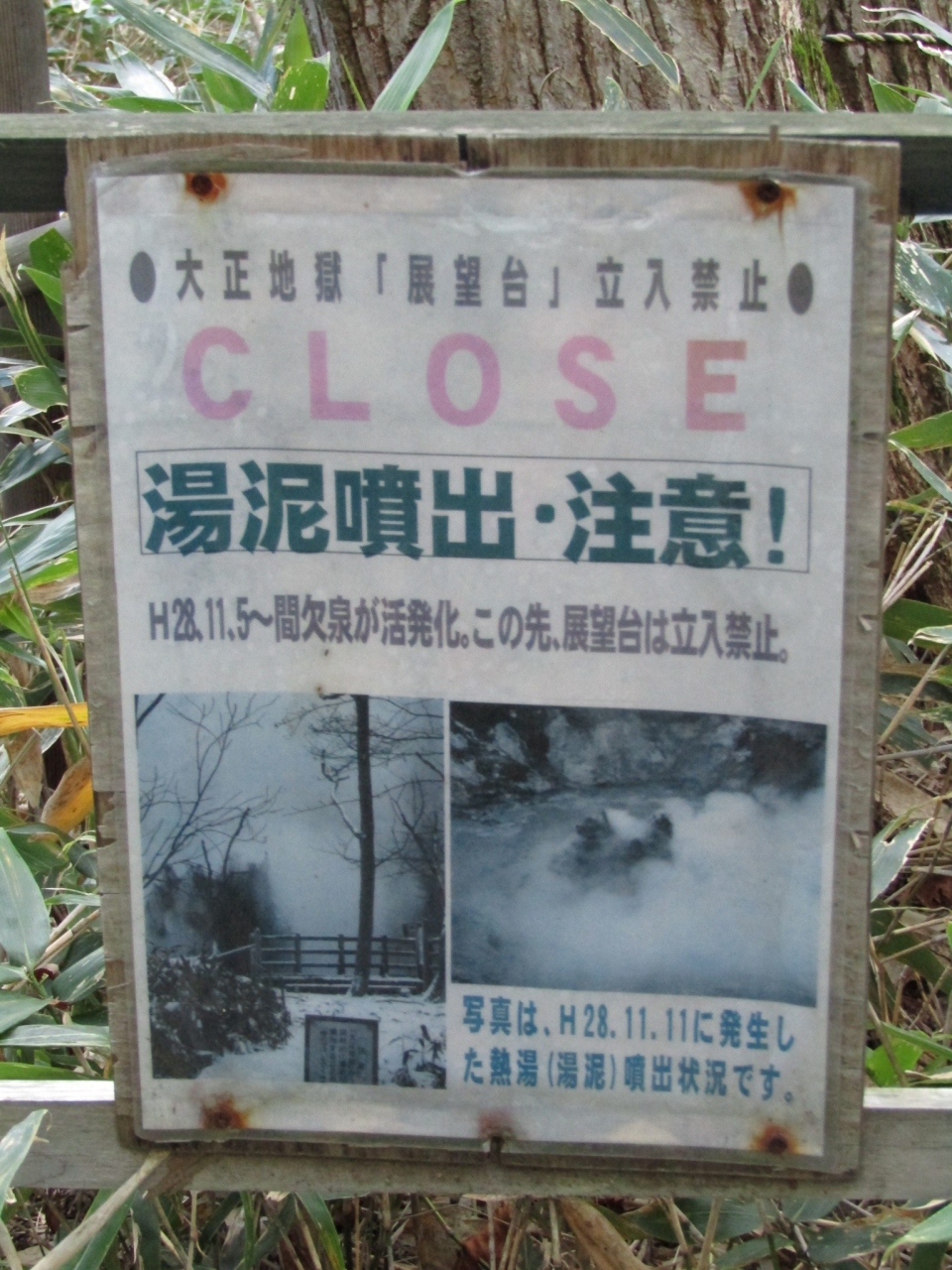 散策路に〔 ←大正地獄 〕の表示に従って行ってみましたが、大正地獄の手前から立入禁止となっていて見ることができません。