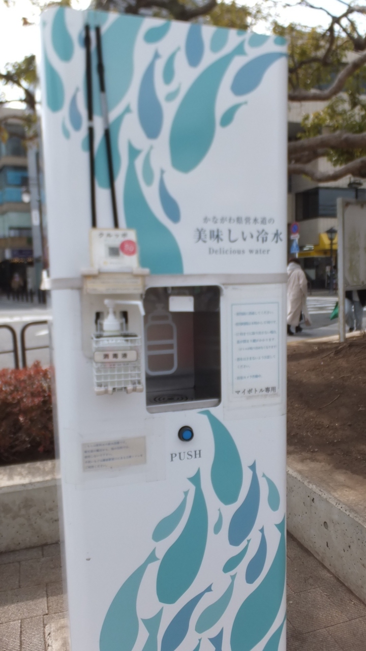 鎌倉駅の御成通り側の改札を出るとすぐに見えてきます。三角屋根のかわいらしいフォルムの時計台です。昔の鎌倉駅にあったという時計で、改装の際に保存してここに移されたものです。時計周辺は広場になっていて、今回初めて知ったのですが、広場には水のマイボトル専用の機械もありました。