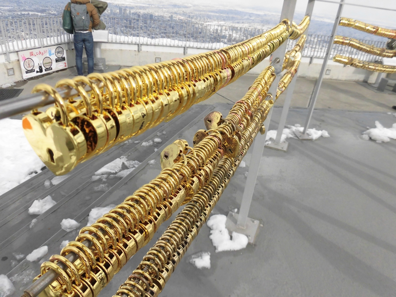 展望台には「幸せの鐘」があり、愛の誓いの南京錠を手すりにつけることもできます。