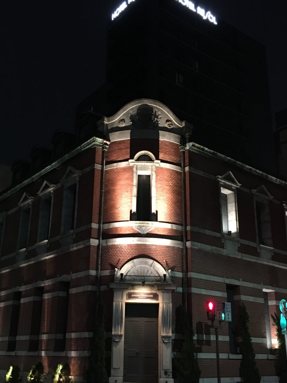 日本の近代建築の父・辰野金吾の設計で、明治45年(一九一二)に竣工。辰野金吾の特徴である赤レンガの外壁に白い石によってボーダーラインを描いたデザインが素敵でドーマー窓や煙突・エントランス部分などの装飾も素晴らしいです。今はウェディングレストラン会場だとか。