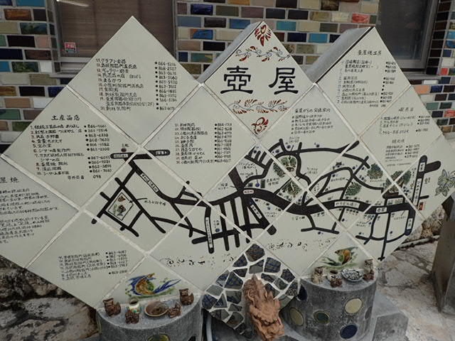 「やむちん」は「焼き物」のことです。こちらの通りには琉球石灰岩が約400mにわたって敷き詰められていて、沿道には陶芸工房や直売店、ギャラリーなどが並んでいました。また、カフェなどの飲食店も散見されました。