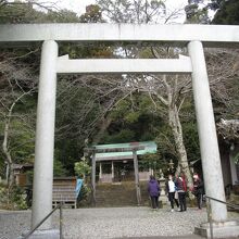 見地にあった由緒書きによると神亀元年(724年)創建という古社で鳥羽城主の九鬼嘉隆が豊臣秀吉の命を受けこの神社の御神木を使って日本丸を建造し軍功をあげ、その後、報恩のために植えた千本の杉の一本が今も残っているそうです。大きな木々に囲まれた拝殿は伊勢神宮のような感じで神々しい雰囲気がありました。神社の参道入り口右横手からは日和山へとつづく道があり、展望台から鳥羽湾を一望することができました。