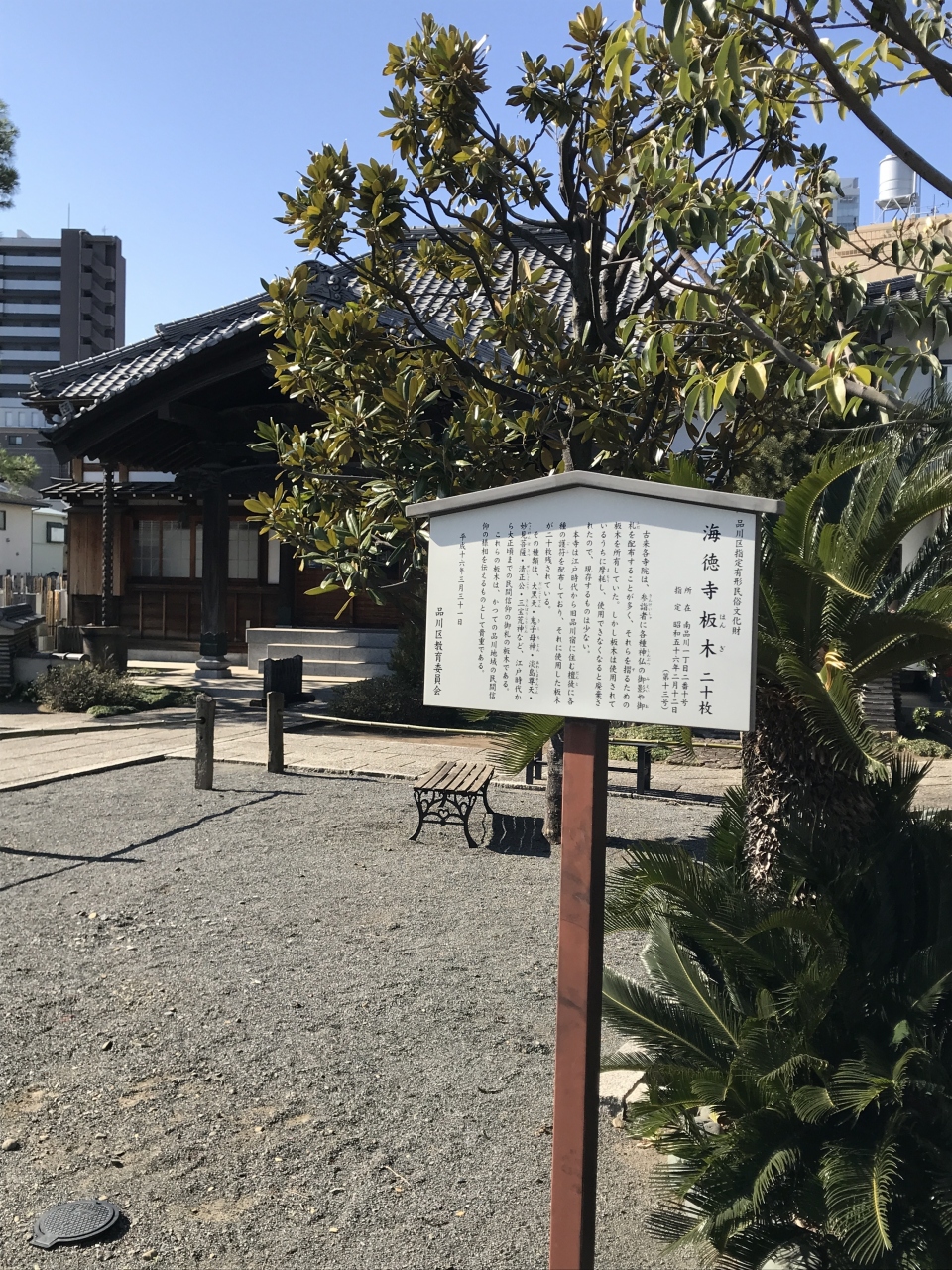 目黒川沿いの側道を下流方向に進んで行き荘川橋を渡り、川沿いを駅方面に少し戻ったところにこちらの海徳寺あります。