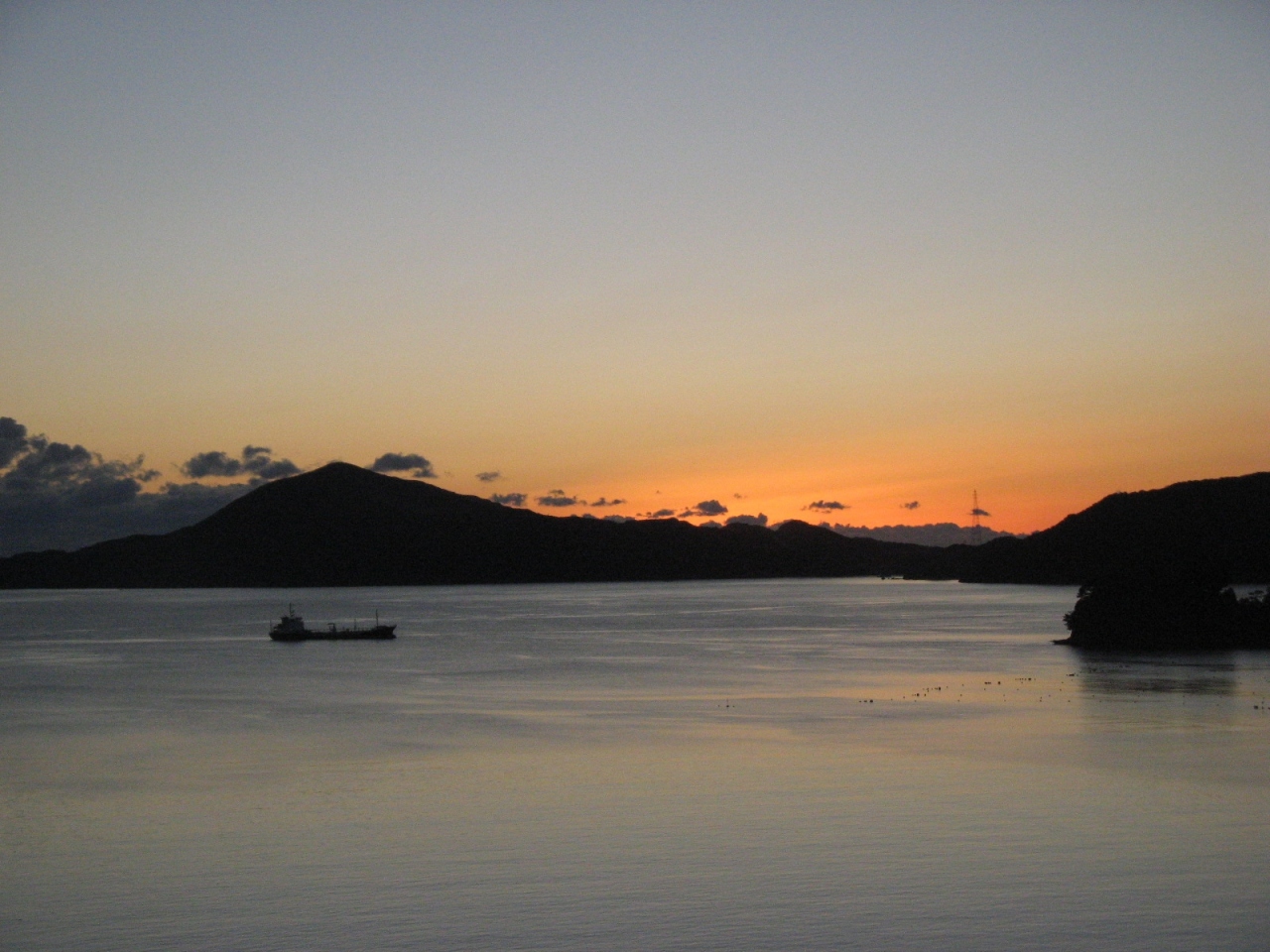 高台にある鳥羽シーサイドホテルや亀の井ホテルなどに宿泊したので部屋から鳥羽湾の色んな景色を観ることができました。鳥羽湾は波は穏やかで、菅島や答志島、坂手島、神島、イルカ島などたくさんの島があり、観光船や漁船、運搬船など多数の船が行きかうのをぼーっと眺めたり、朝日や夕日の鳥羽湾の光景なども観ることができました。特に、1月25日の朝に観た、鳥羽では珍しい雪の鳥羽湾の風景も忘れられないものになりました。