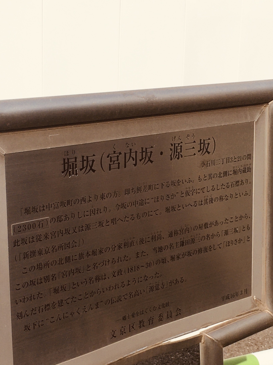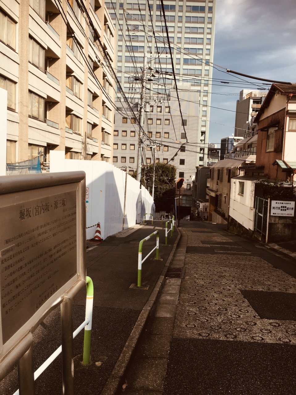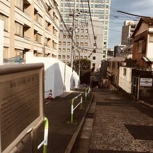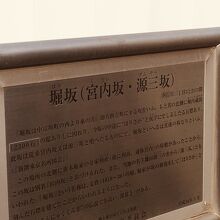 堀坂と言う名称の他に別名が二つあると看板に記載がありました。自動車はすれ違えないぐらいの道幅で、上から降りると傾斜は最初は緩めでしたが、直ぐに急になり自転車では降りて上がらないとキツそうな傾斜でした。周りは住宅街です。