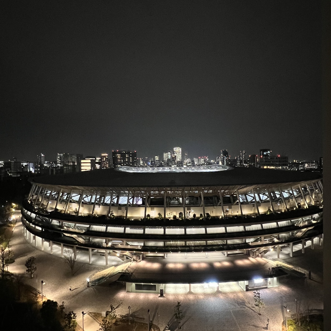 国立競技場の目の前にあるホテルに宿泊して、そこから長い間眺めていましたが、意外なことにそれほど大きくは感じませんでした。ザハ・ハディドの建物を見てみたかったですが、ないものねだりですね…