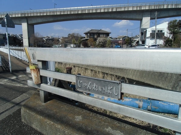 昔、横浜の弘明寺から座間の星谷寺へ、坂東三十三観音めぐりをする巡礼者たちが、この橋を往来したのが名前の由来です。