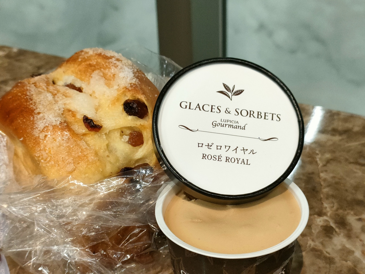 コーヒーや各種飲料、そしてルピシアのアイスクリームの自動販売機が設置されていて、テーブル席でゆっくりおいしくいただくことができました。