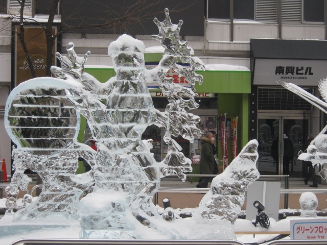 その後は氷像が並ぶすすきの会場にも足を運びましたが、こちらも例年だと豊川稲荷付近まで続いている会場が、すすきの市場入口前付近で終わっていたりと、遠慮気味の開催に感じられました。
