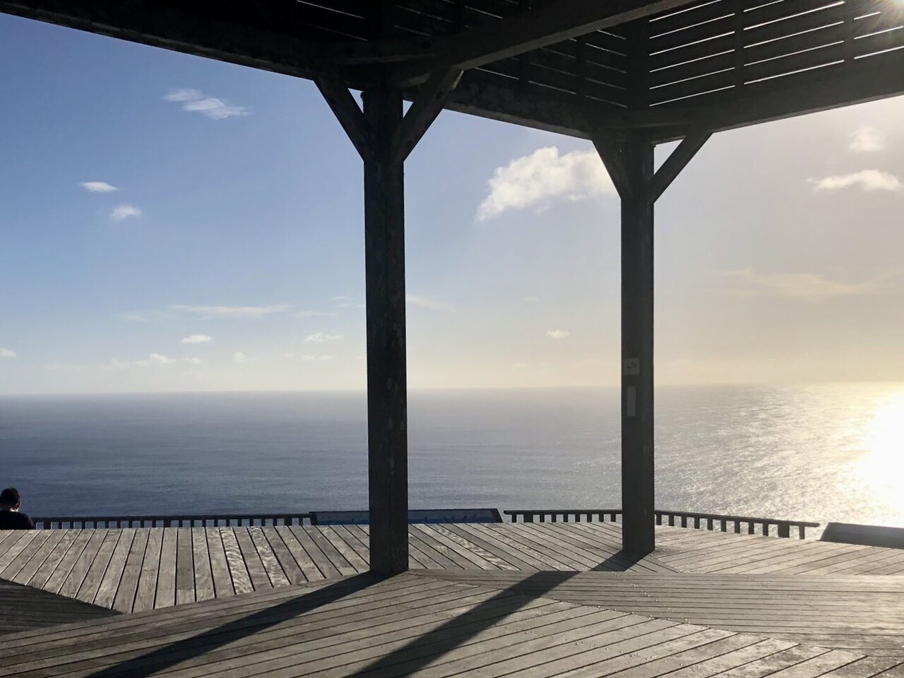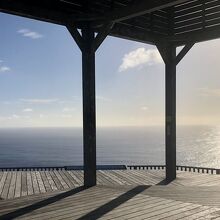 二見港から、車で数分でウェザーステーションに到着します。ここからの景色も充分素敵ですが、さらに15分登ると三日月山展望台に到着します。夕日やクジラを見るスポットとして有名な展望台だそうですが、昼過ぎに到着したので夕日までは時間があり、クジラも残念ながら現れてくれませんでした。