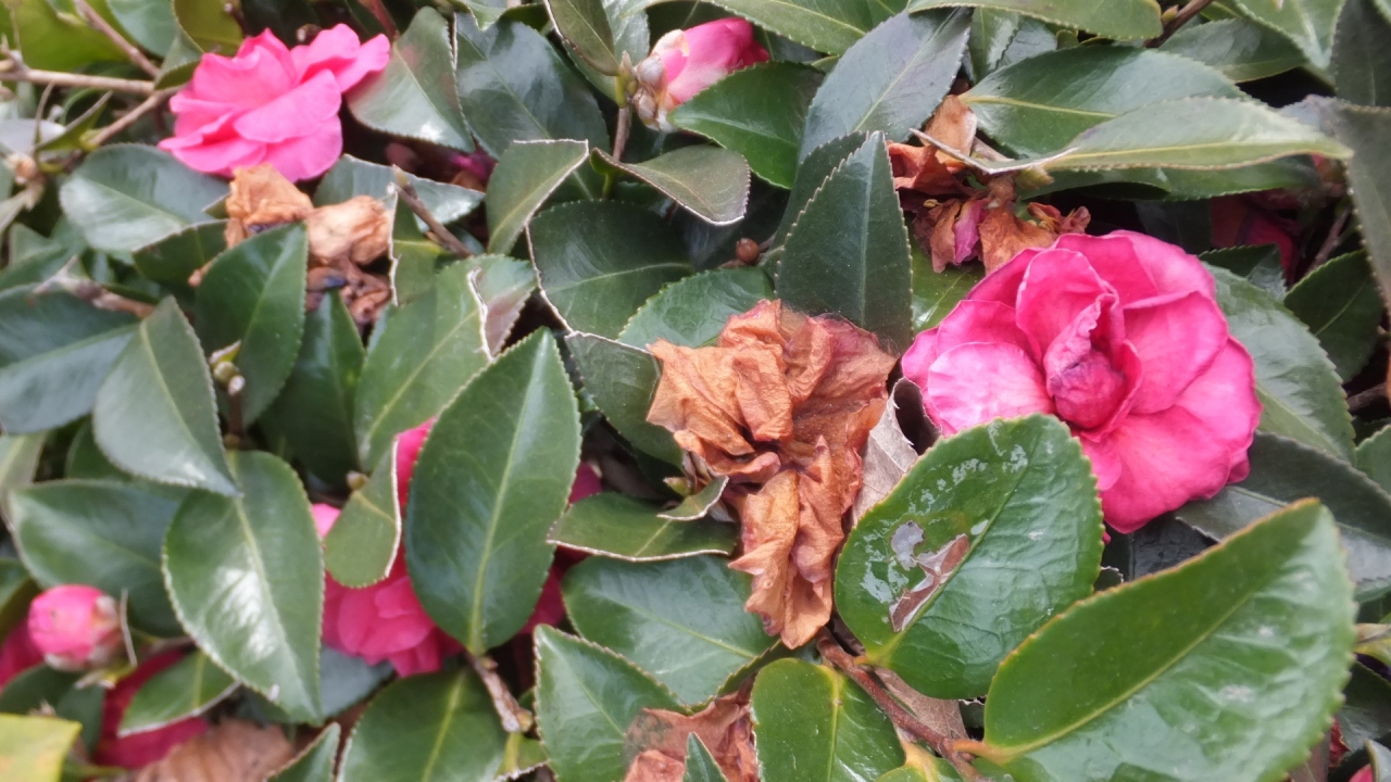 鎌倉の散策で訪問しましたJRのセント、踏切近くにある場所です。上杉氏は鎌倉幕府に仕え、足利氏と婚姻関係を結んで、関東の管領になっていきますね。石碑が建っていて、その周辺はちょっとした植え込みがあるのですが、2月ということで山茶花が咲いていました(一部もう枯れ始めていましたが)。