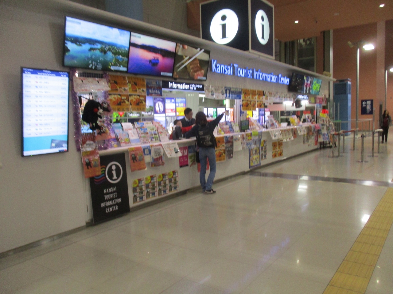 関西国際空港の案内所に観光用のパンフレットがたくさんありました。関空から市内に向かう前、移動中に目を通すことができました。尋ねたいことがあり、使っても良いものやら少し迷ってしまいましたが、親切に答えていただけたので助かりました。