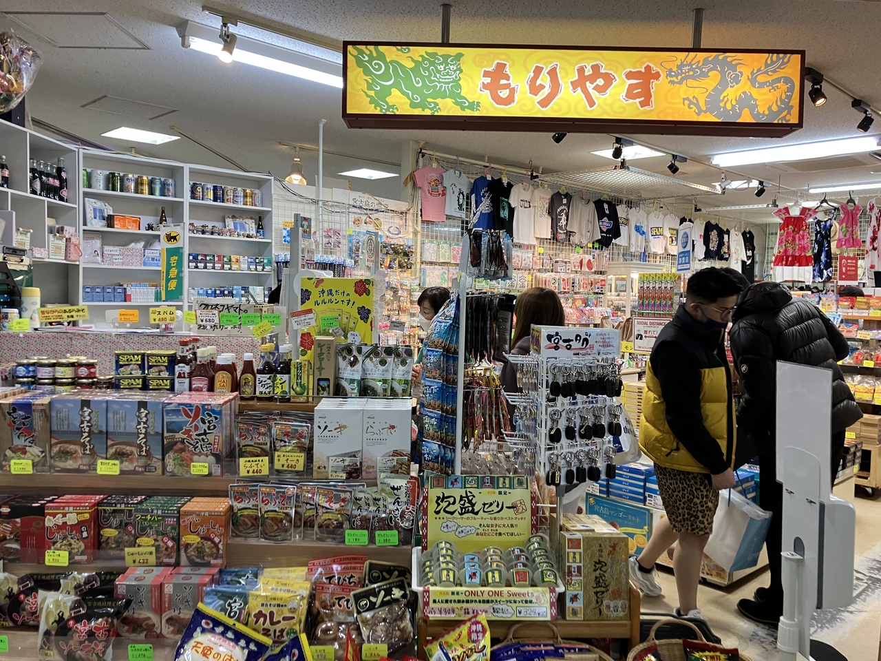 宮古空港ターミナルビルの2階にあります。こちらも宮古島や沖縄のお土産がどっさり。目移りするくらいあります。もちろんモンベールのバナナケーキや宮古島の「雪塩」の各種お菓子もありました。Tシャツやマンゴータルトも。