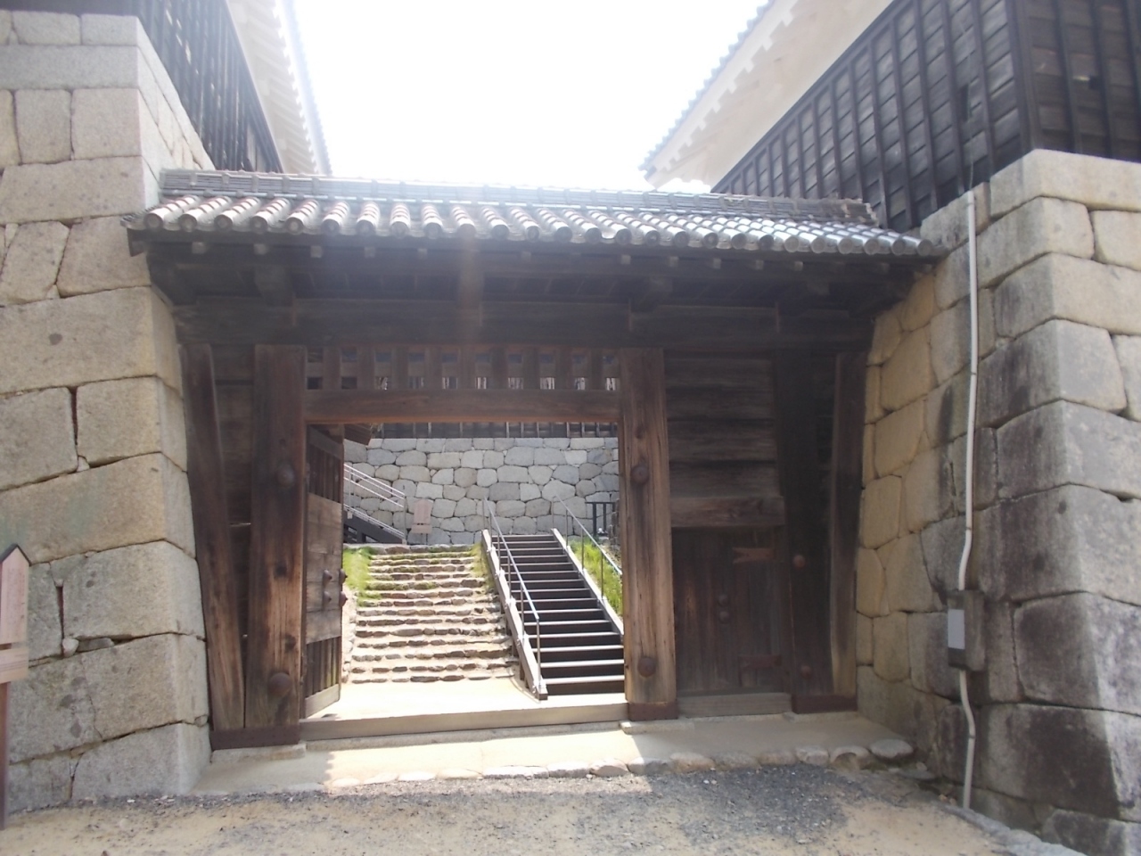 天守へ入るときくぐる最初の門で、防衛上、重要な役割を担うからか、飾り気のない簡素なつくりですが、両脇を石垣に挟まれていていかにも堅牢そうです。三層の大天守とともに国の重要文化財に指定されている建築のひとつです。