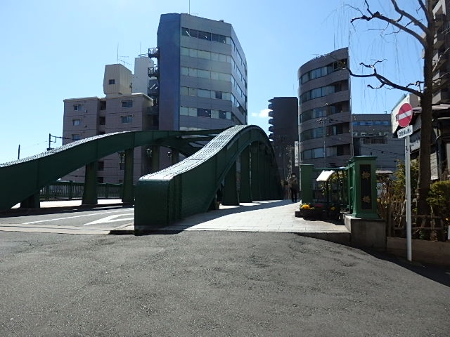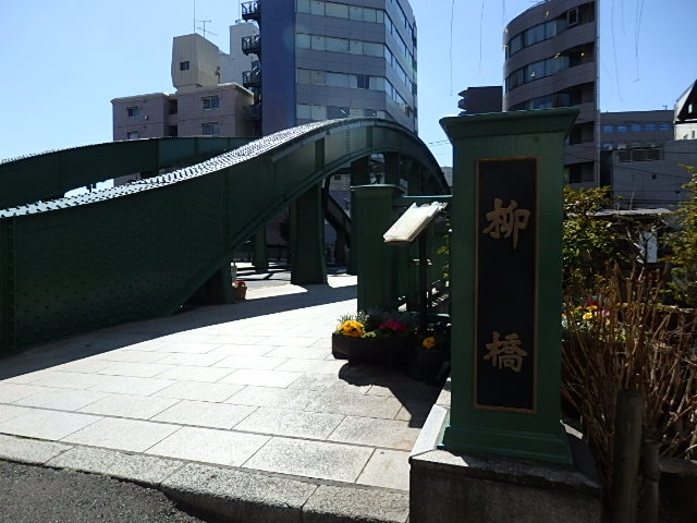井の頭恩賜公園から東へと流れる神田川の最も下流に架かる橋で、その直ぐ先では隅田川と合流します。柳橋は何度か架け替えられ昭和4年(1929年)に竣工した鋼製ソリッドリブタイドアーチ構造橋が現在に至ります。意匠的・技術的に優れた物が登録される有形文化財にも登録されています。