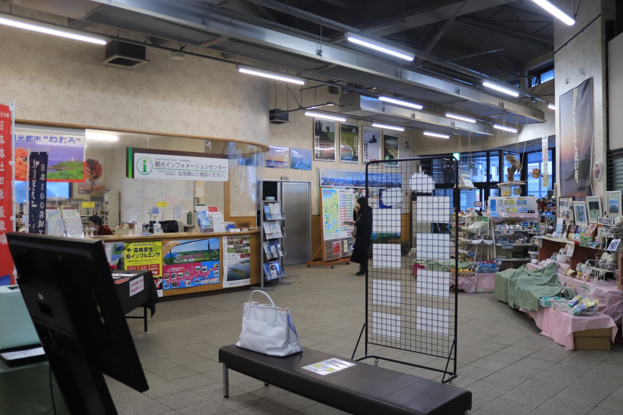 根室駅すぐ横の根室交通バスターミナルと同居しています。パンフレット類をそろえた観光案内窓口のおか、地元根室のお土産物産を扱った売店も併設されていました。根室駅に着いたら、まずこちらで情報収集しましょう。