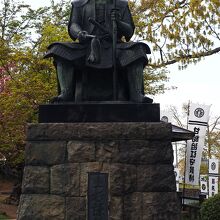 上杉神社に入って最初に見かける像で、どっしりと構えて見透かすようなその表情に強さが滲み出ています。
