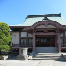 池上本門寺周辺には本門寺を囲むようにしていくつもの日蓮宗の寺が存在します。この寺もその一つで、大坊本行寺に入る道路沿いに建っています。向かいに真性寺や實相寺が建っています。14世紀に開創され、宝樹坊と合併されたそうです。小豆色の柱と梁が特徴の銅板葺屋根の本堂です。本堂の彫り物は緑色に縁どられ、中央の彫り物は赤い色でした。落ち着いた雰囲気の境内でした。