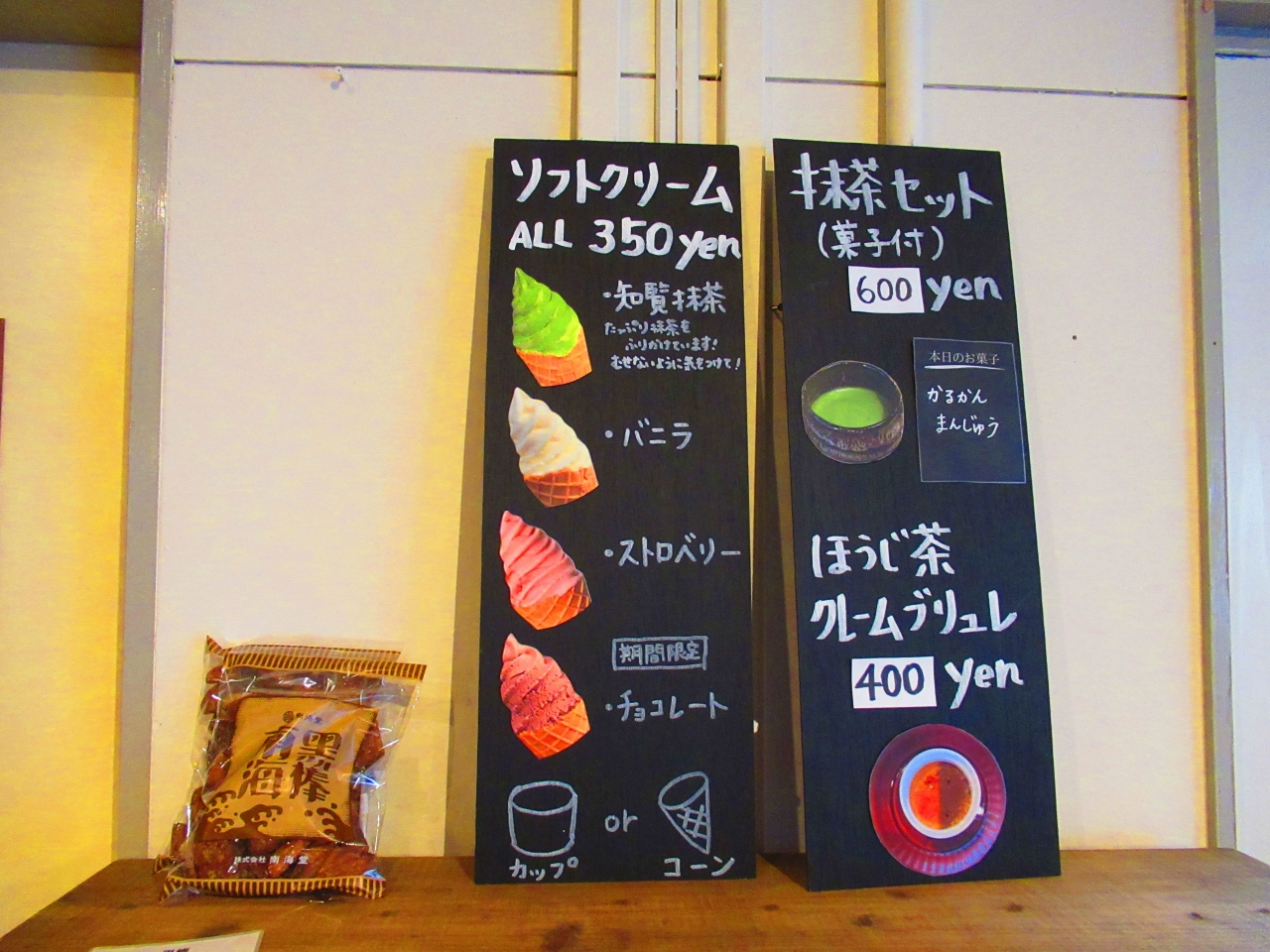 知覧武家屋敷庭園から近いので観光のついでに行きやすい場所にあります。お店の前には鯉も泳ぐ清流溝があり、いい雰囲気です。入店するとおススメのお茶を出してくれます。ソフトクリームなどのスイーツもいただけます。