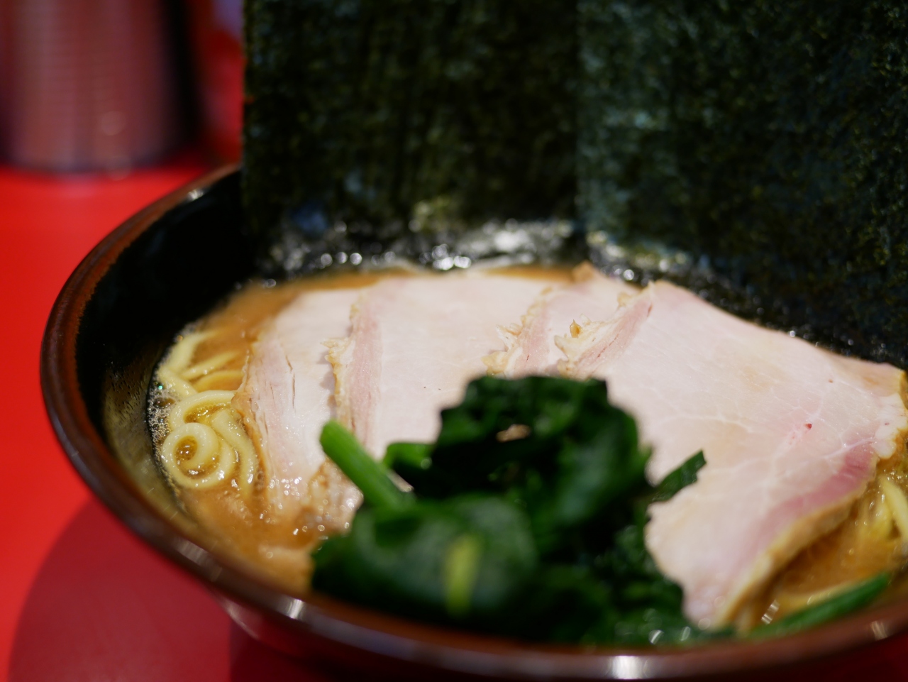 次の日に記念日ランチを控えていたので、家系伝家の宝刀ラーメンライスは抑制しました。海苔が美味しかったので、次回は是非ライスを注文したいと思います。