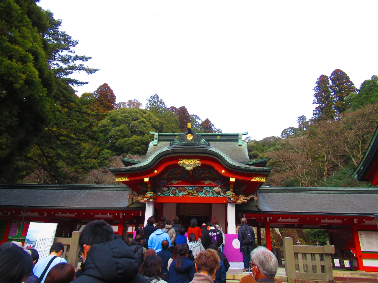 割と鹿児島空港からも近いせいか、霧島温泉のついでに参拝する人が多いのか、混んでいました。日本で初めて新婚旅行に行ったと言われている、坂本龍馬とおりょうが訪れたとされていて、ボードがありました。