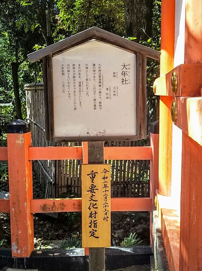 八坂神社の境内末社「大年社」は、「十社」の隣にありました。