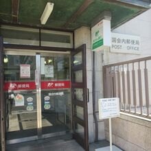 衆議院議員会館に挟まれた山王坂を上がったところに建つ、国会議事堂隣の衆議院面会受付所の1階にある郵便局です。周辺には国会議事堂や議員会館など日本の中枢を担っている建物が多く、物々しい警備が行われているため、郵便局に入ったり利用したりするのも大変だと思っていましたが、他のどこにでもある郵便局同様の業務が行われていて、容易に局内に入ることができちょっとびっくりしました。