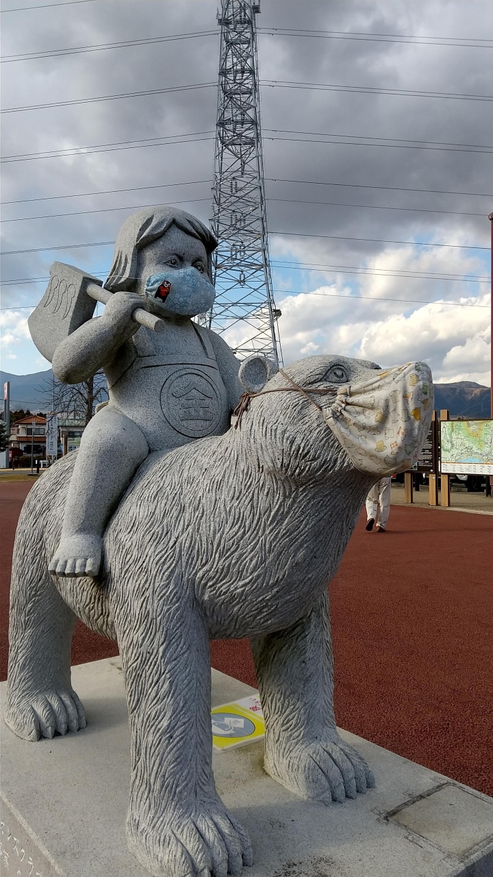 足柄に近いので、金太郎のオブジェなどがあります。時節柄マスクをした金太郎と熊は、可愛らしかったです。