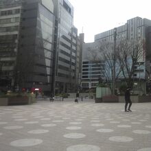 日比谷シャンテの前にある広場で、噴水の上のほうに、小さなゴジラの像がたっています。