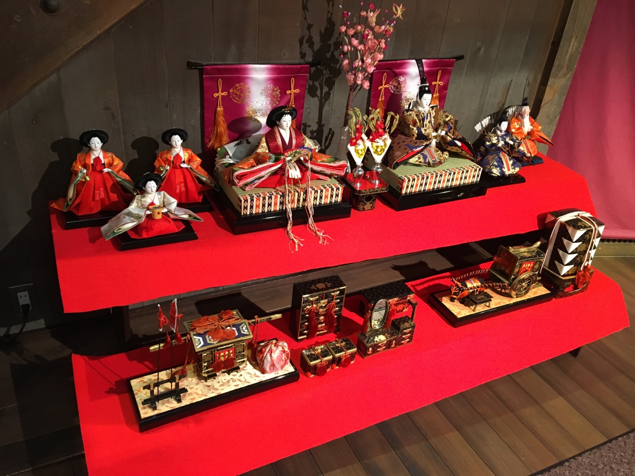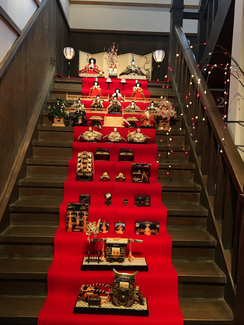 季節限定イベントなのか、入った真正面の階段にひな壇が飾ってあり綺麗でした。