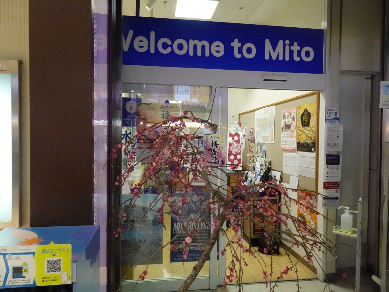 訪れたのは梅まつりの初日で、案内所前には梅の枝が置かれ花を添えていました。