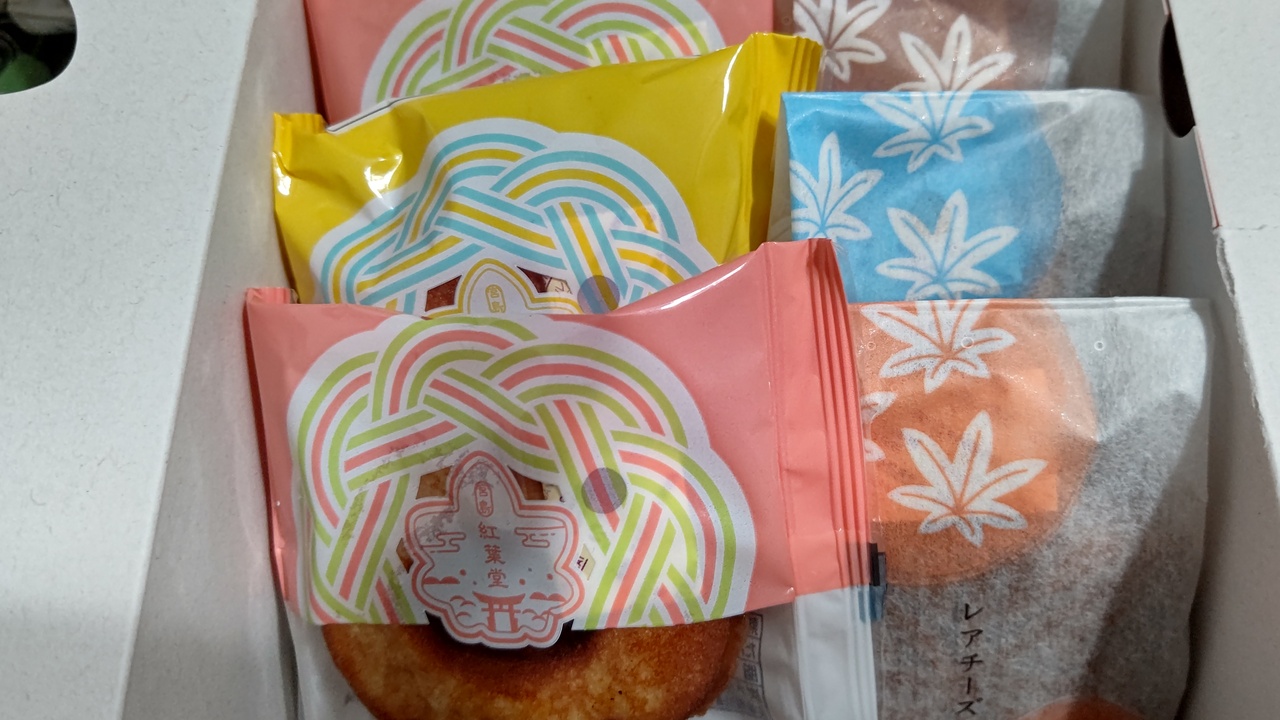 広島駅のエキエの一階にあるお店で以前からとても気になっていた店。もみじ堂と言えば揚げもみじが有名だが、今回はドーナツとセットのモミマン。ドーナツは甘みがあり少しフィナンシェのような味で我が家では好評だった。モミマンもリーズナブル感のある味だった。