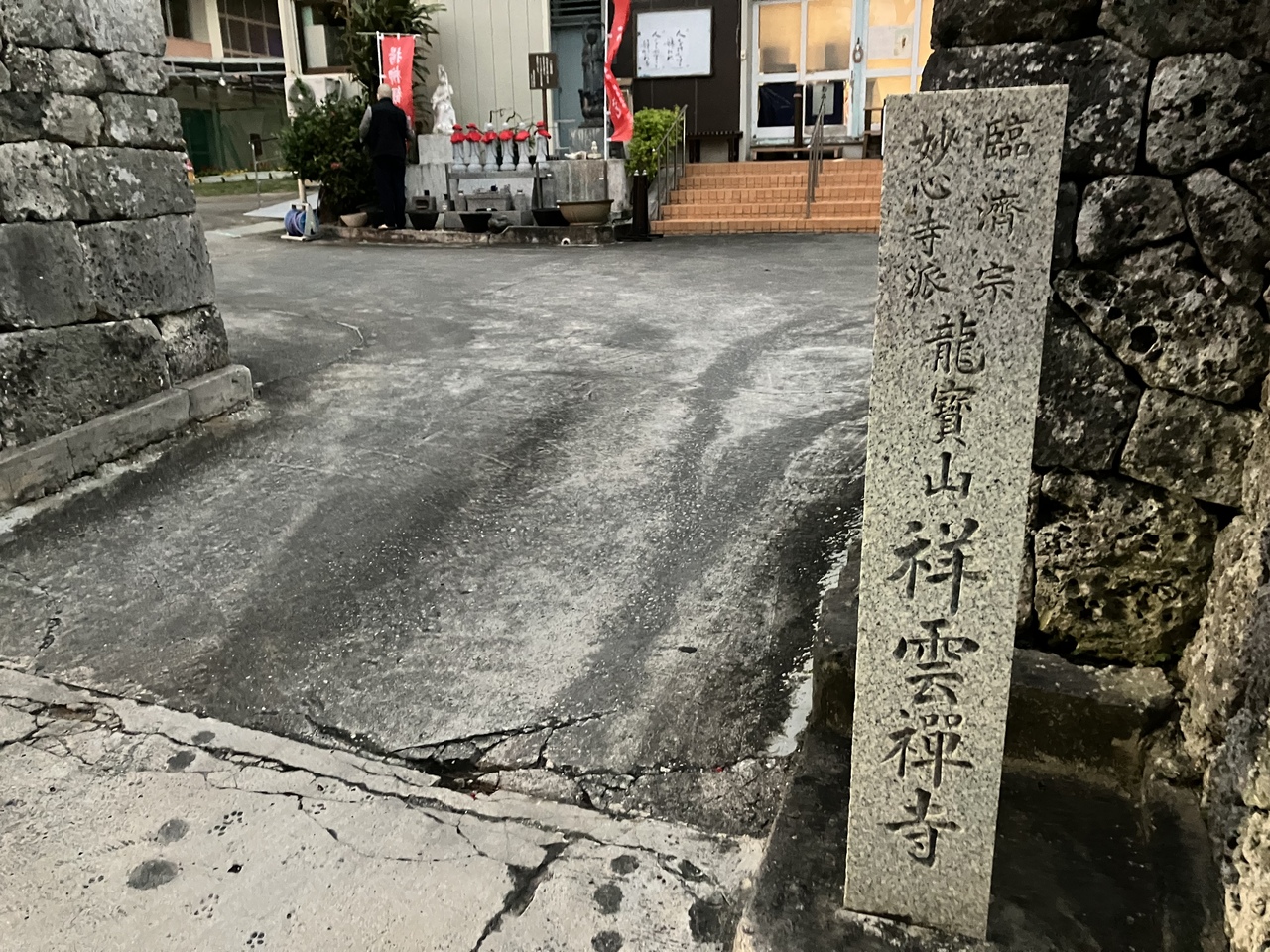 宮古空港から車で15分ほどです。宮古神社の近くにあります。祥雲寺の周囲を囲む石屏は18世紀に造られたそうです。お寺の本堂は鉄筋コンクリート製ですが、石垣塀は歴史を感じ重厚さがあります。琉球石灰岩でしょう。
