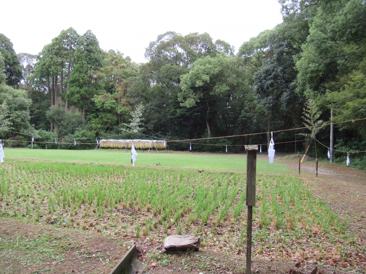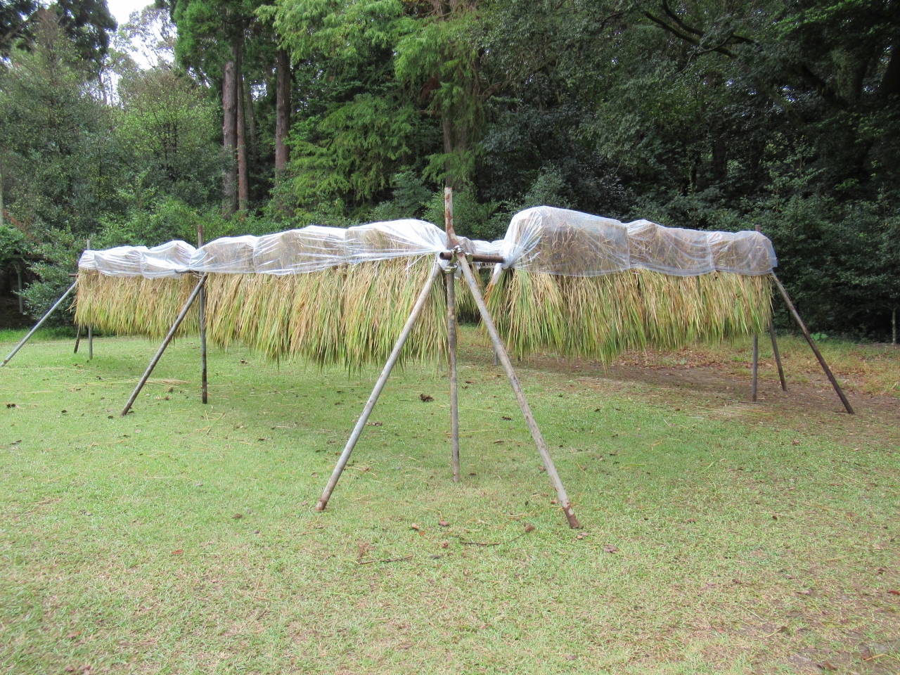 また、御神田やふじ棚もありましたが、訪問時は稲刈りが終わった頃で、稲わらが架けて干してありました。