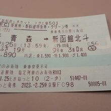 この商品、新青森~新函館北斗間の新幹線のグリーン車指定席が概ね半額で利用することができ、当日はグリーン車であるにも関わらず普通車指定席の所定料金である7,520円より2,630円も安い4,890円で利用することができ、大変お得でした。