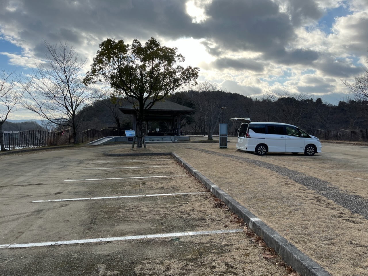 公園の南側にダムを一望出来る湖畔の駐車場があり、