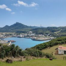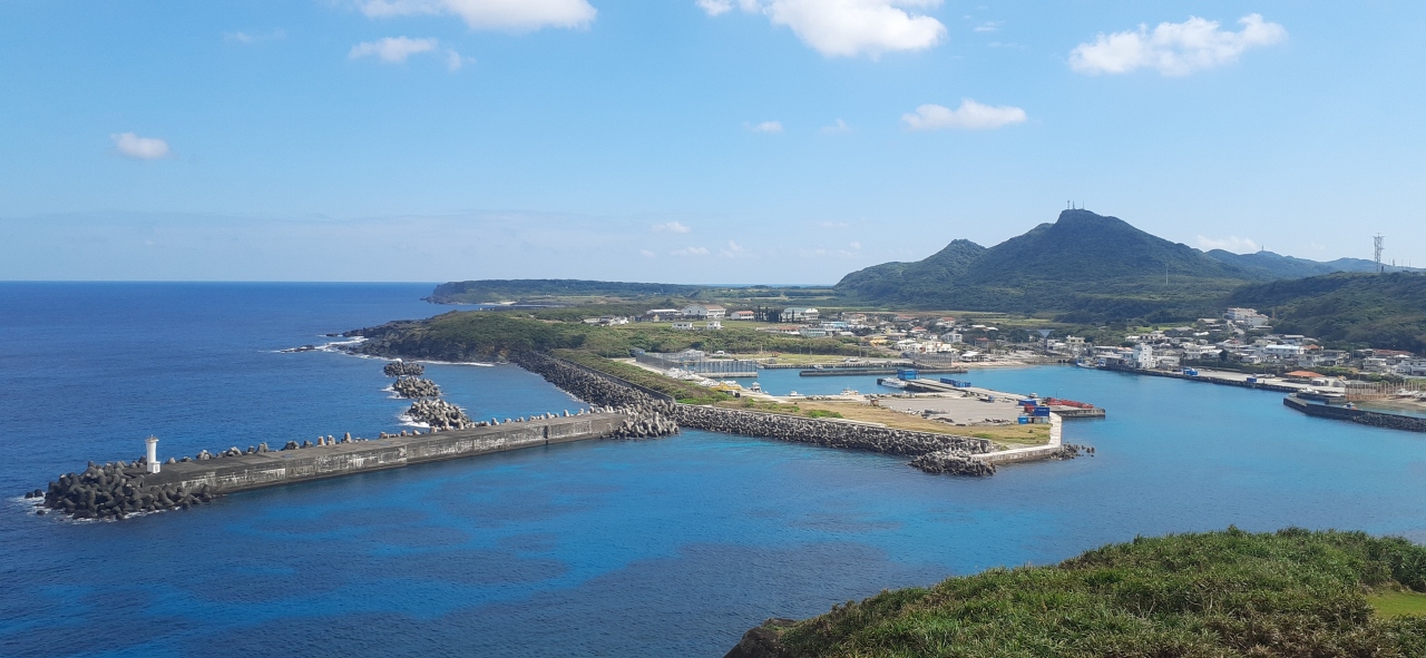ここからは台湾方面への青い海と日本最西端の集落である久部良の集落や港が見えます。