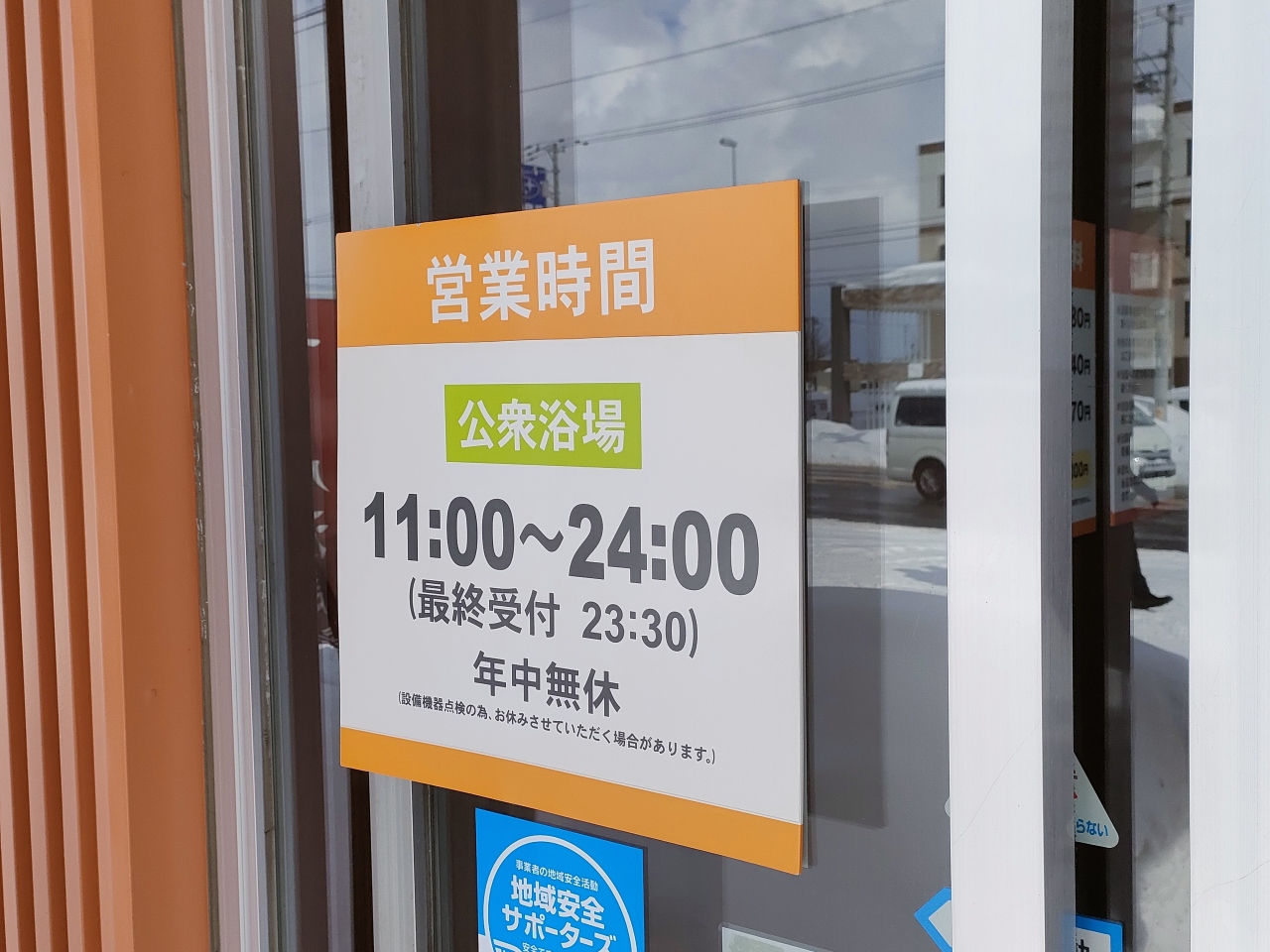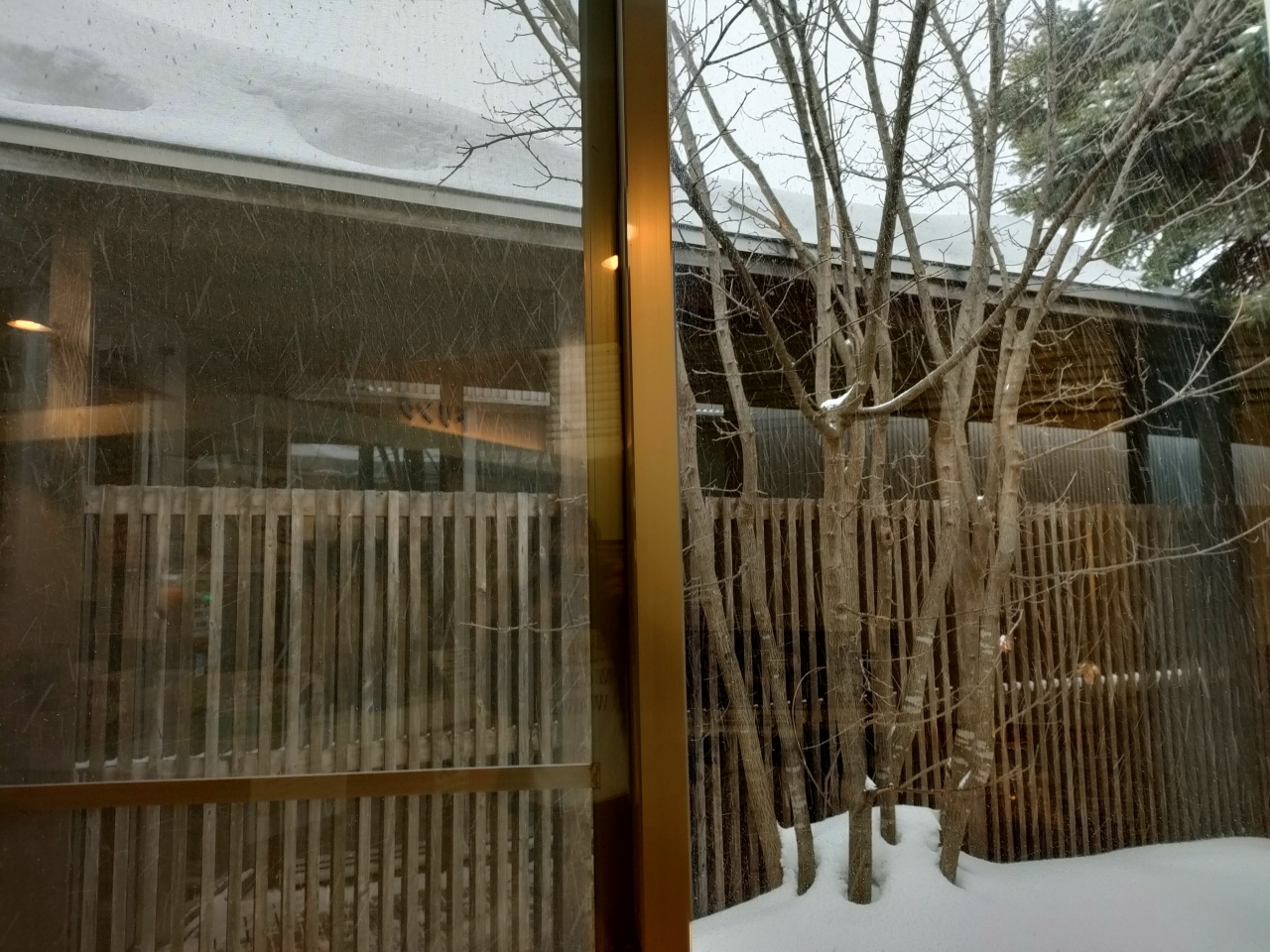 露天は、3分の1ほど屋根に覆われ、周囲は高い垣とサウナ室に囲まれて周囲の景色は見えませんが、男湯の方はどうも国道側に面しているようです。一部屋根付きの露天なので、雪見風呂は気分が良いです。