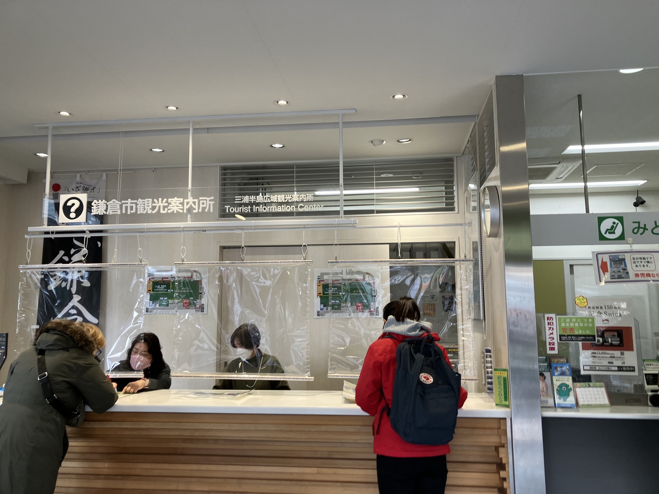 JR鎌倉駅東口改札を出てすぐ左手にあります。JRみどりの窓口と同じ建物です。観光パンフレットと観光地の行き方、バス路線等をスタッフが常駐して案内をしてくれます。外国語対応のできるスタッフも常駐していました。外国語人観光客もちらほら見かけるようになっています。9:00~17:00です。