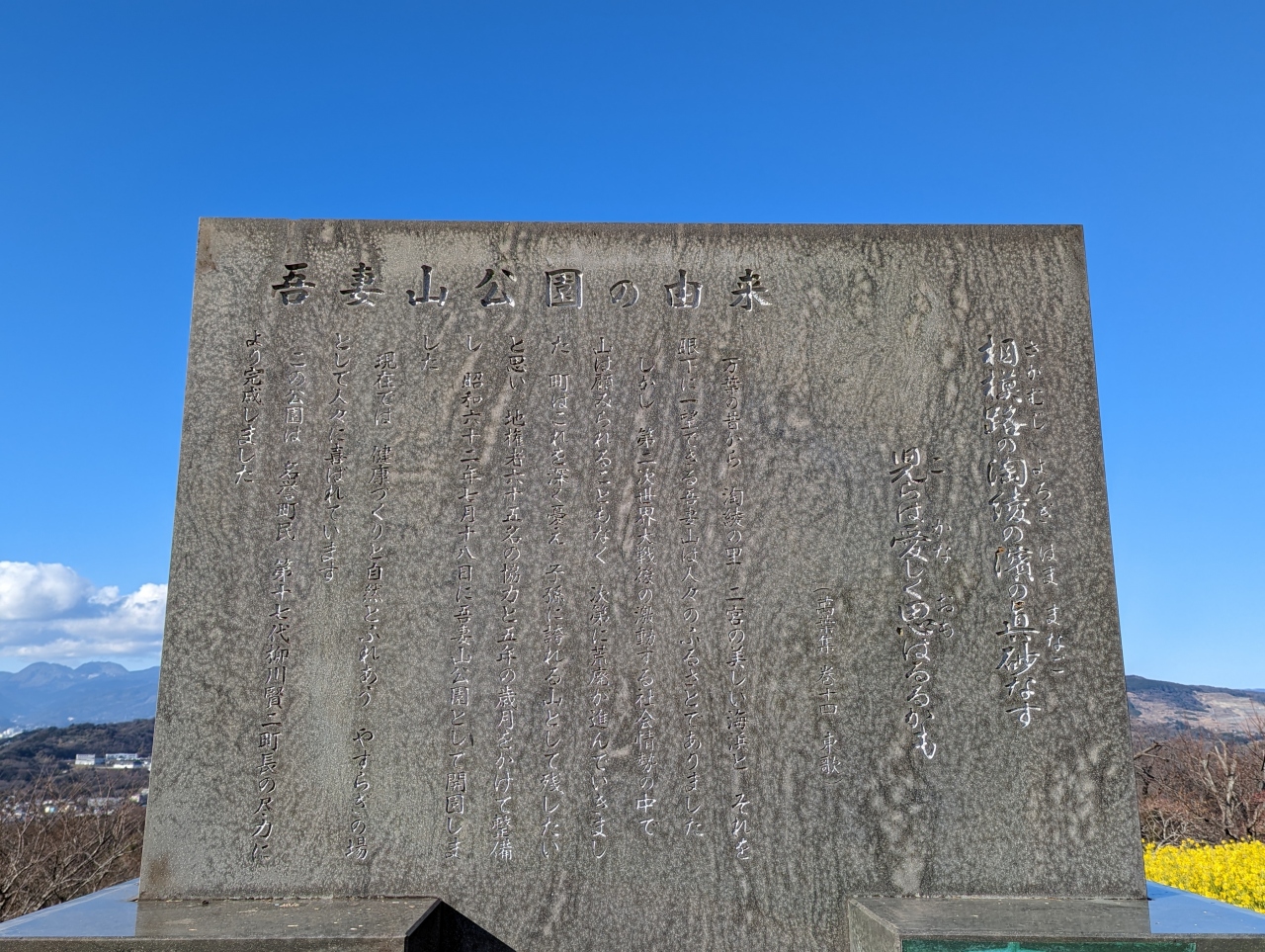 二宮駅を降りると北側にすぐに見つけることが出来る、吾妻山に整備された公園です。