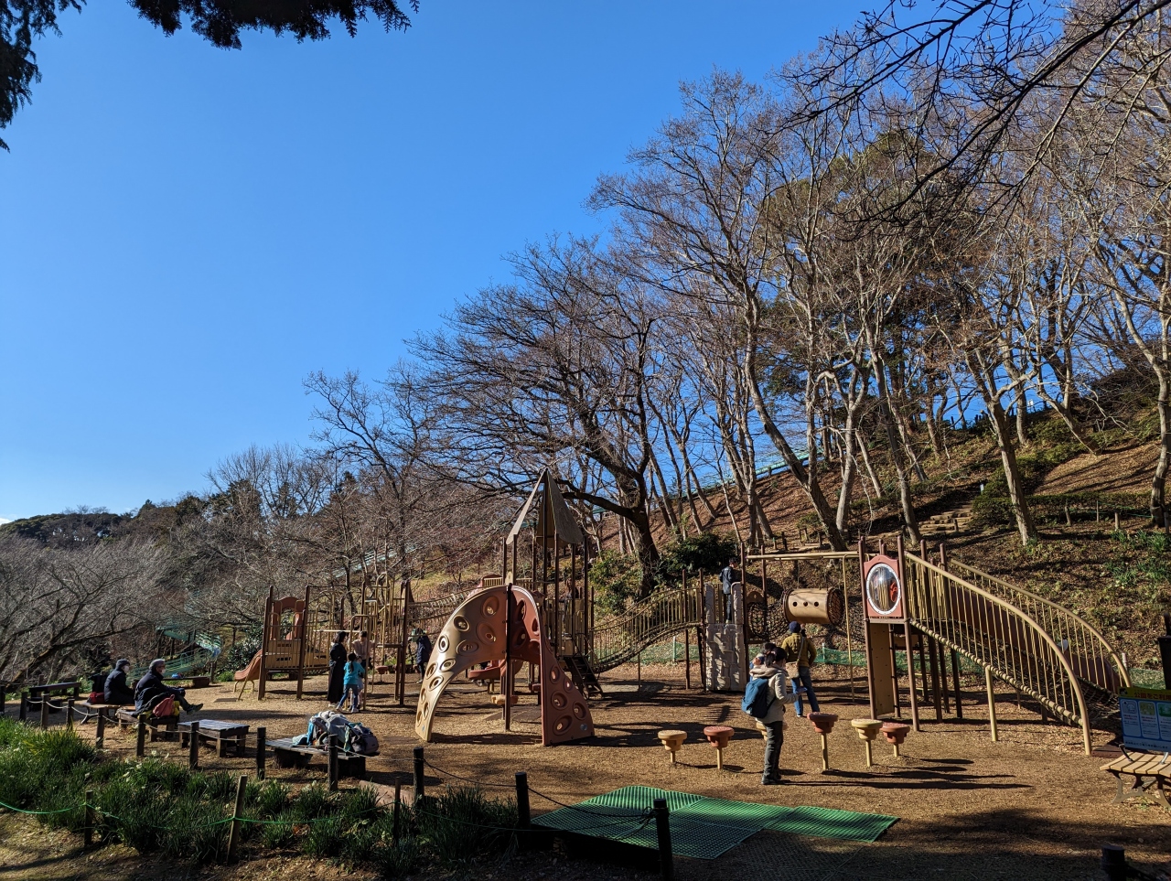 山頂近くに子供向けの遊具があり、特にローラー式の滑り台は子供たちに大人気です。遊具があるスペースにお手洗いがあります。