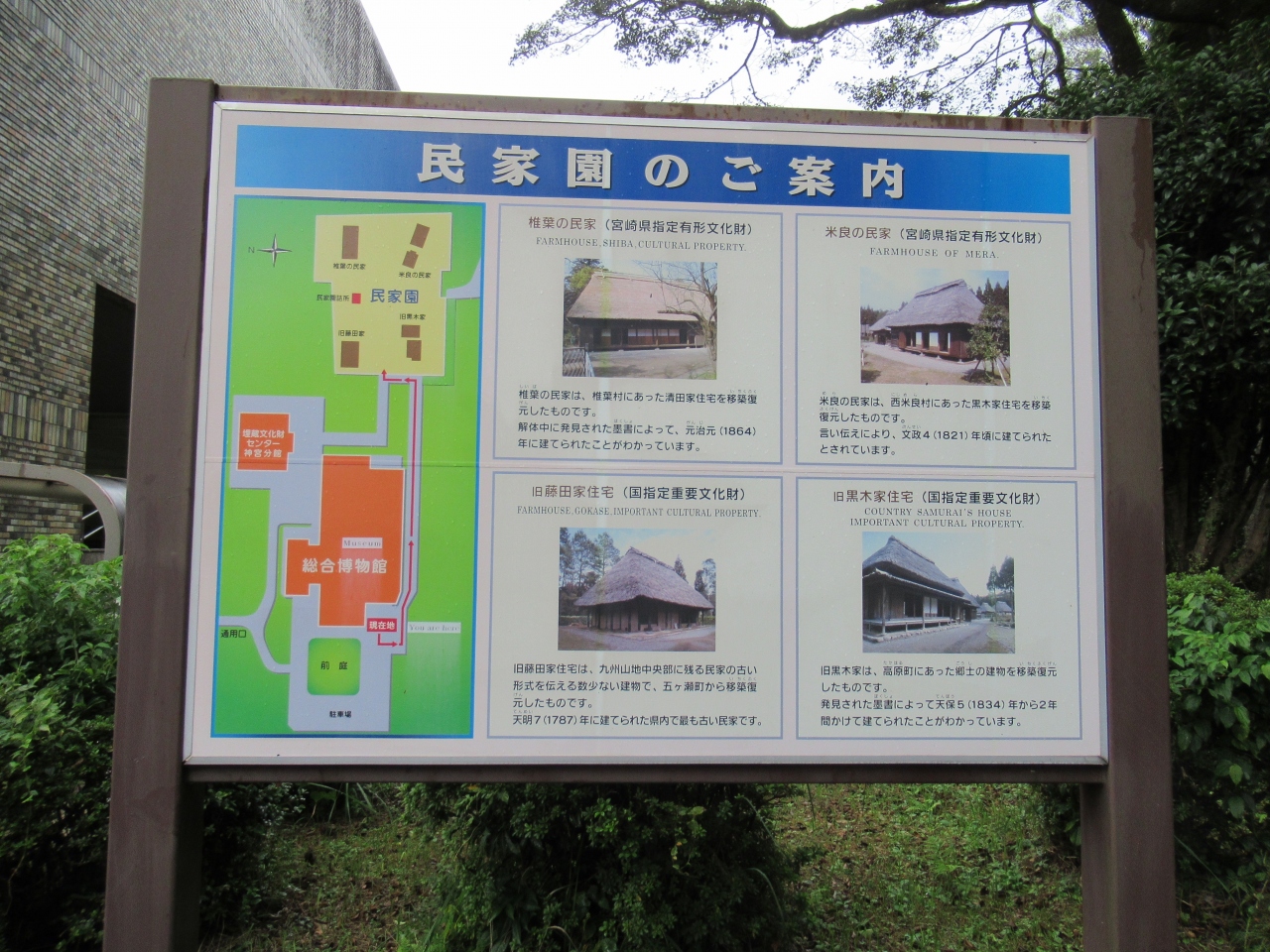 宮崎県内各地には、かつて、その地方独特の建築様式をもった民家が多数あり、そのなかから特色のある4棟の民家を、宮崎県総合博物館民家園に、昭和47年から昭和53年にかけて移築復元したものです。