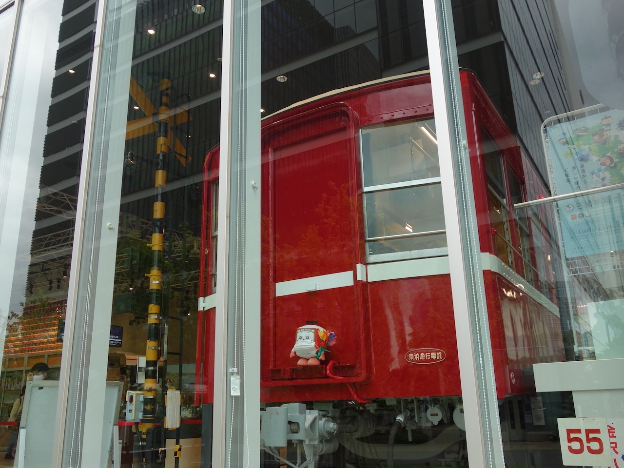 京急の実物車両がビルの中にあります。ガラス張りなので外からもよく見えます。